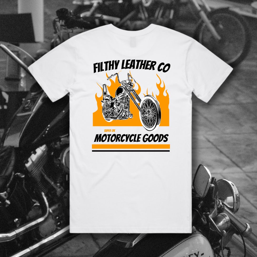 Our Super OK Tee is the ultimate chopper t-shirt made from the highest quality materials to ensure a comfortable, long-lasting fit.